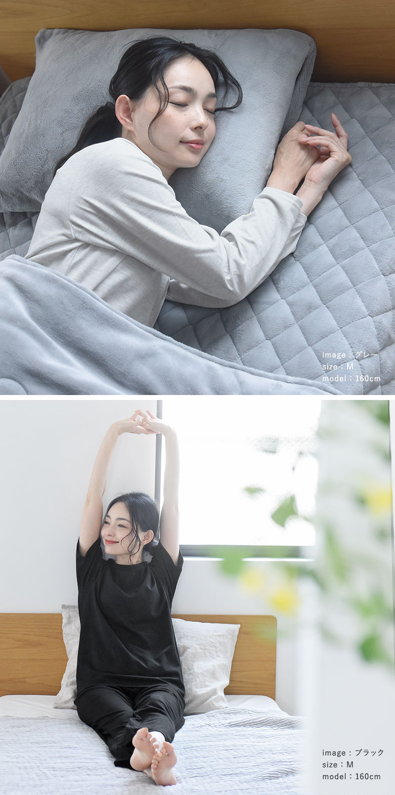 伸縮性が高いので締め付け感がなく睡眠時もストレスフリーに着られます。
