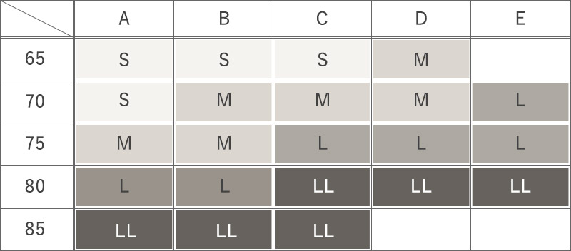 フィット感の高いインナーなので、SサイズからLLサイズまでの4サイズ展開に。普段着用されているブラジャーのアンダーやカップをご参考にお選び下さい。