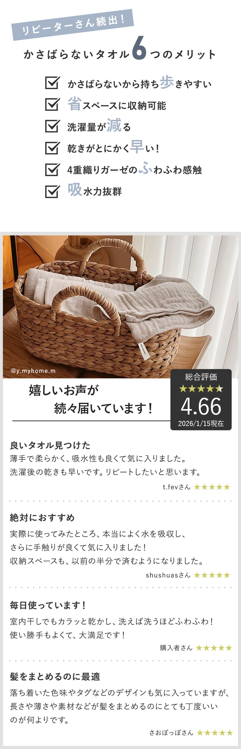 リピーターさん御用達かさばらないタオル春夏の新色公開!