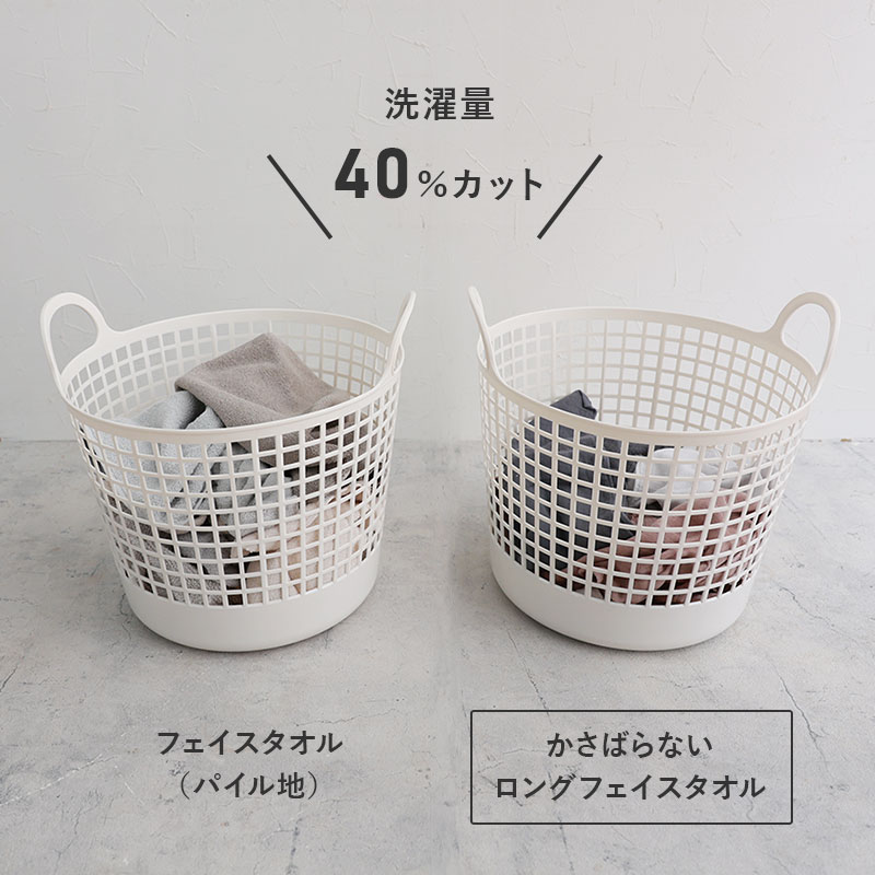 一般的なフェイスタオルより、ボリュームが少ない分、洗濯量を約40%減らすことができます。