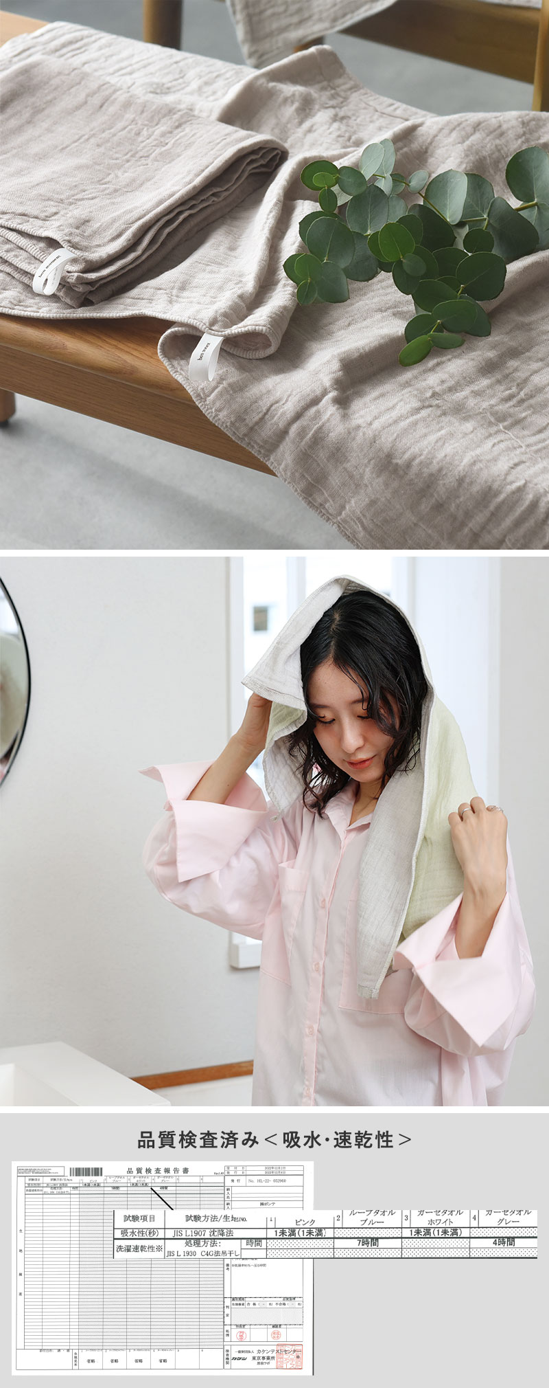 通気性のいいガーゼ素材だから、乾きやすさも優秀。
