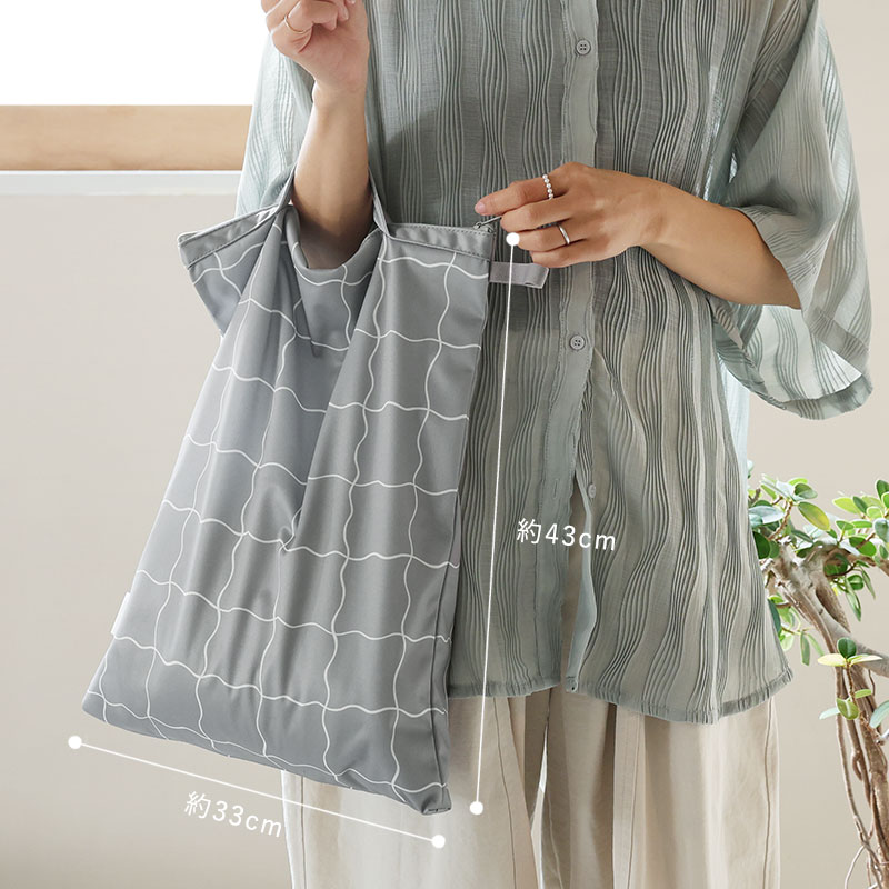 縦43cm×横33cmのたっぷり収納できるMサイズ。ジムやヨガのほか、旅行や日帰り温泉、プールや海水浴、川遊びなどのレジャーシーンに行くときにも使いやすいサイズ感です。