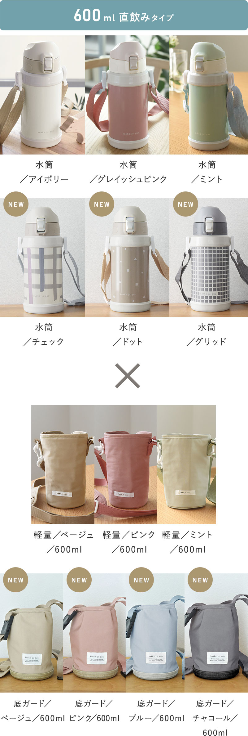 水筒600ml/アイボリー   水筒600ml/グレイッシュピンク   水筒600ml/ミント   水筒450mlストロー/アイボリー   水筒600ml/チェック   水筒600ml/ドット   水筒600ml/グリッド