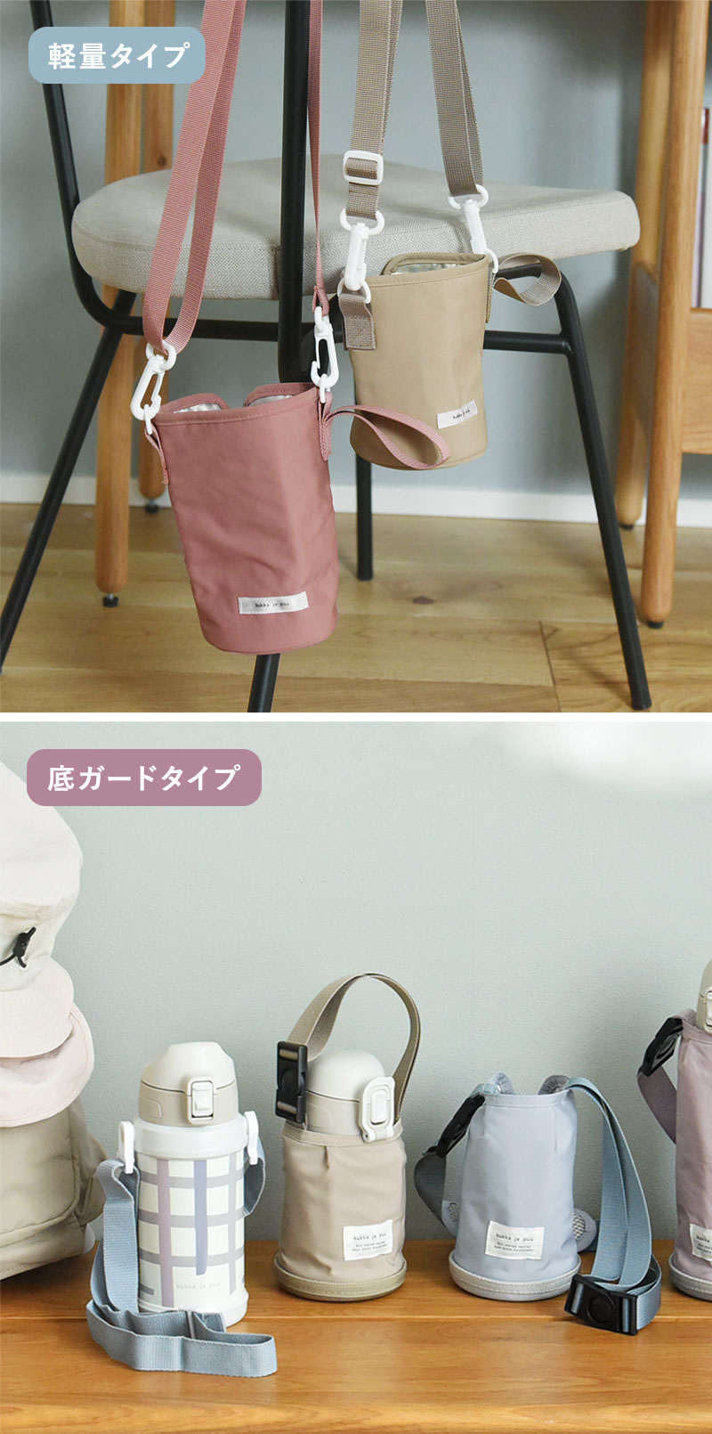 専用の水筒カバーは、軽さ重視派さんに嬉しい「軽量タイプ」と、傷からしっかり守りたい方にぴったり「底ガードタイプ」からお選びいただけます。