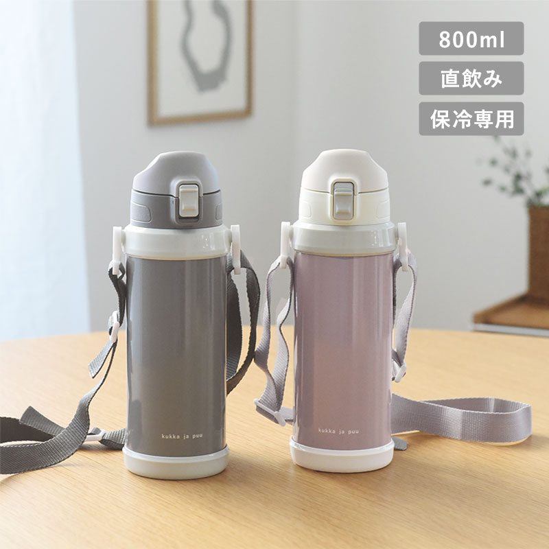 夏の暑い時期やスポーツをする時にもごくごく飲める800ml。くすみカラーが落ち着いた印象で、お子様と共有して親子で使うのも◎。デザインだけでなく、しっかり保冷&ロック機能付きで機能性もバツグンです。