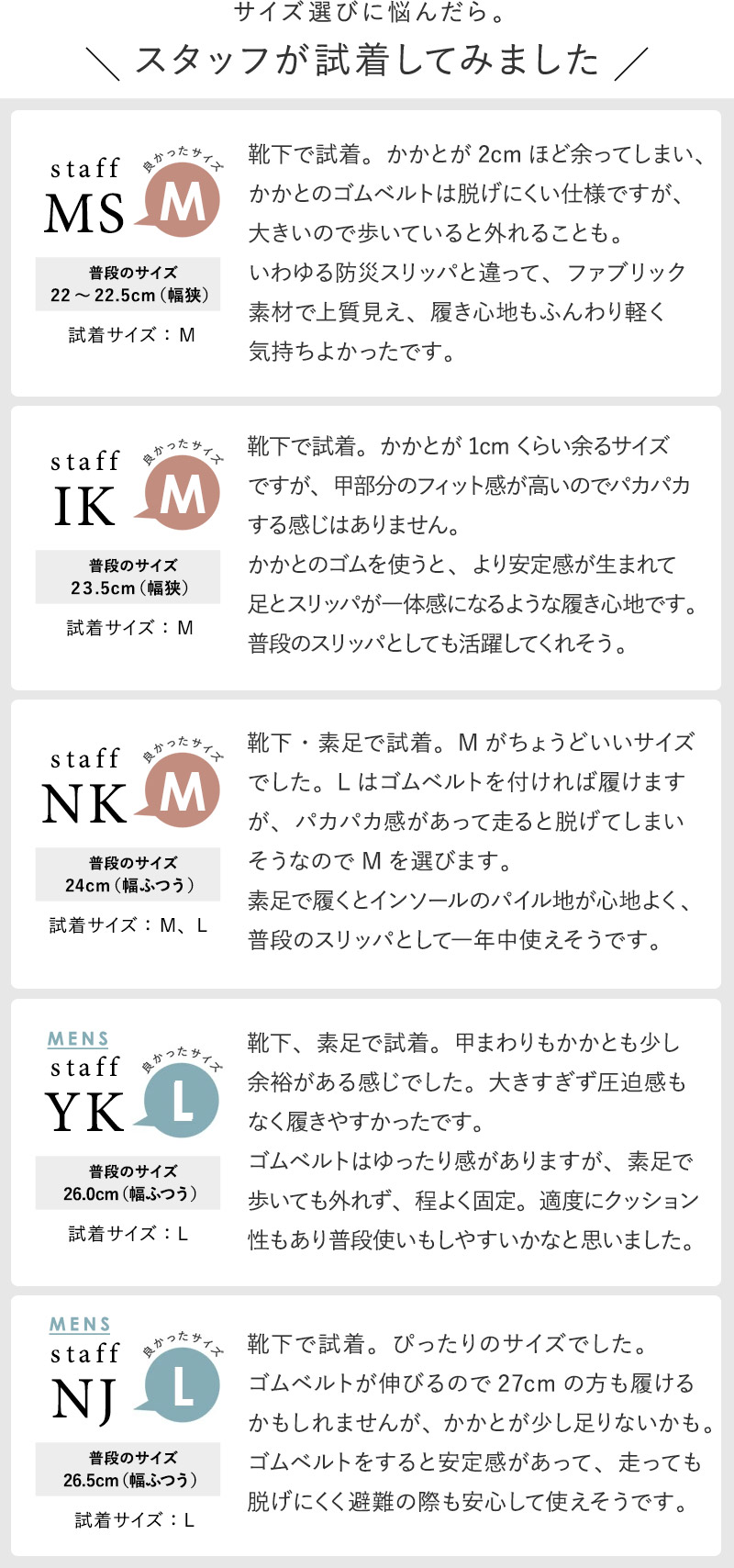 靴を履く余裕なんてない、そんな時にも、普段から履いておける防災スリッパを備えておくと安心です。