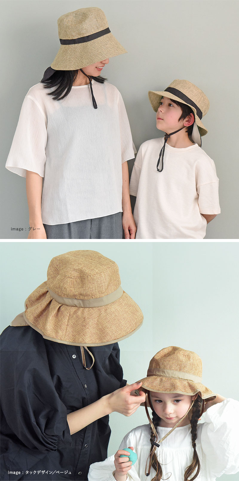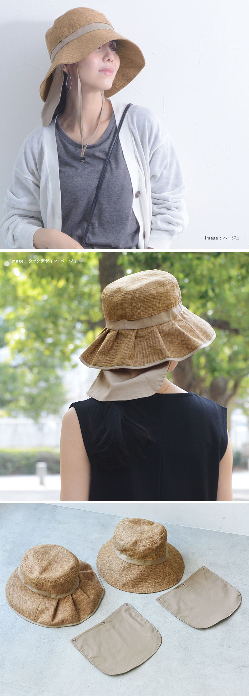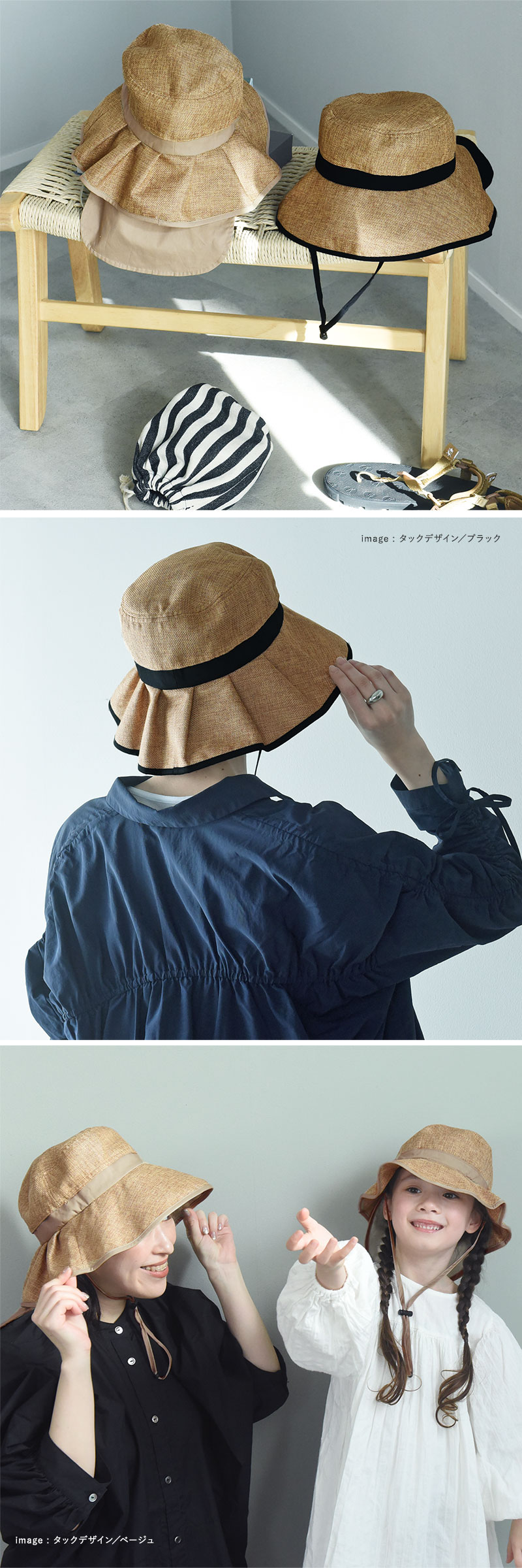 ファッション(Angers FASHION)>>ファッション小物>>帽子】kukka ja puu 親子リンクできる 大人サイズ ジュート風 帽子 保冷剤ポケット&日よけタレ(ネックガード)付き/クッカヤプー