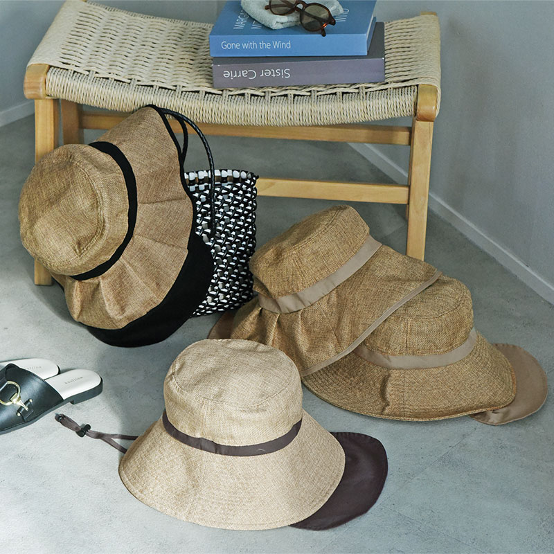 • kukka ja puu 親子リンクできる 大人サイズ ジュート風 帽子 保冷剤ポケット&日よけタレ(ネックガード)付き/クッカヤプー