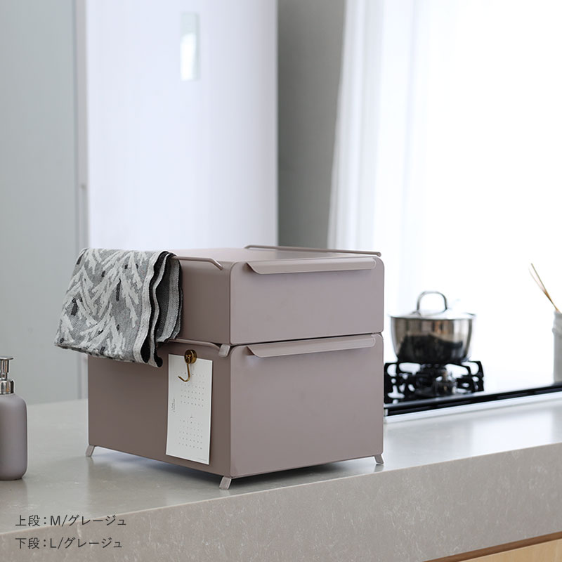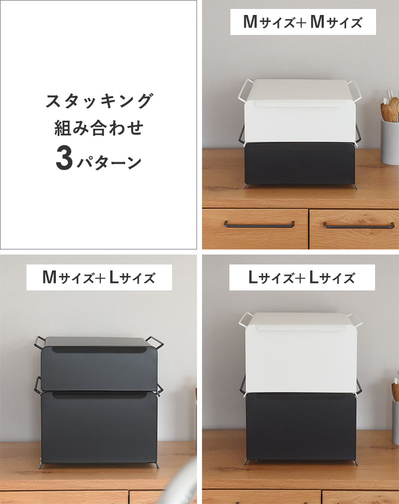 Mサイズ、Lサイズともに3色展開。すっきり清潔感のあるホワイト、空間を引き締めるブラック、ナチュラルに馴染むグレージュからお選びいただけます。