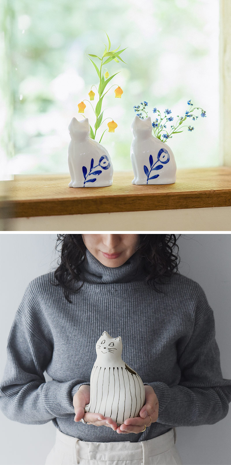 • 子猫の花器 フラワーベース 波佐見焼/『愛 編む 磁器猫』 ひがし ちか