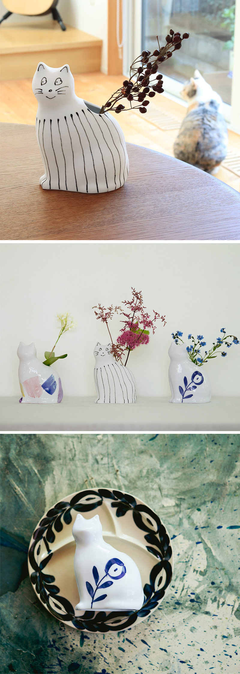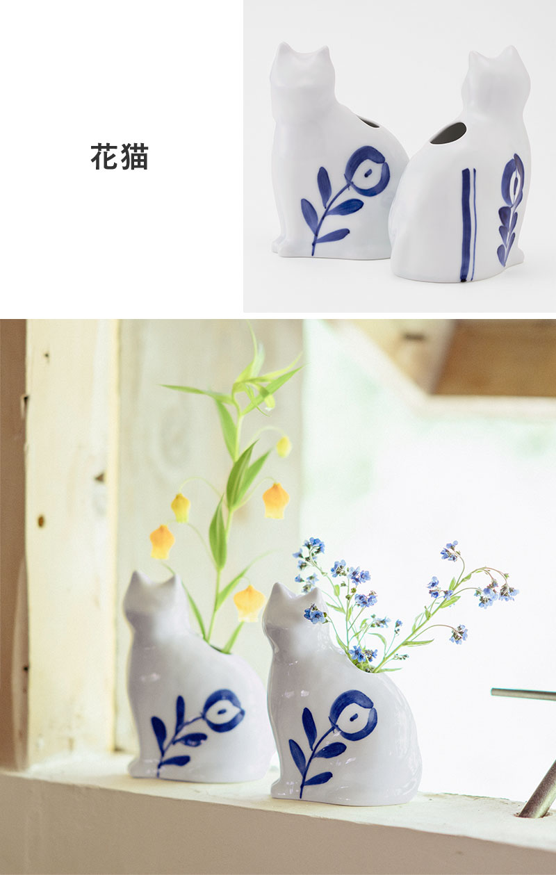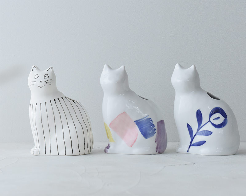 インテリア雑貨(angers home) >> インテリア・雑貨 >> フラワーベース】子猫の花器 フラワーベース 波佐見焼/『愛 編む 磁器猫』 ひがし ちか
