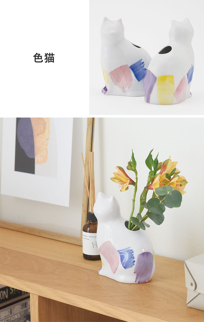 子猫の花器 フラワーベース 波佐見焼/『愛 編む 磁器猫』 ひがし ちか