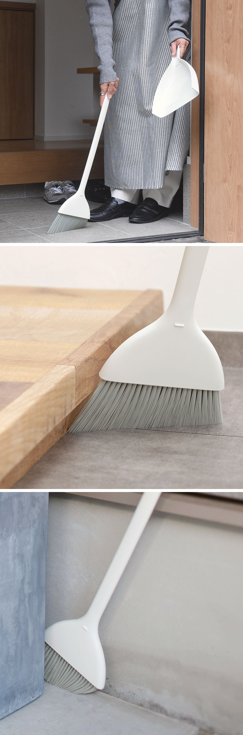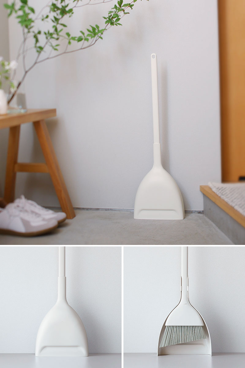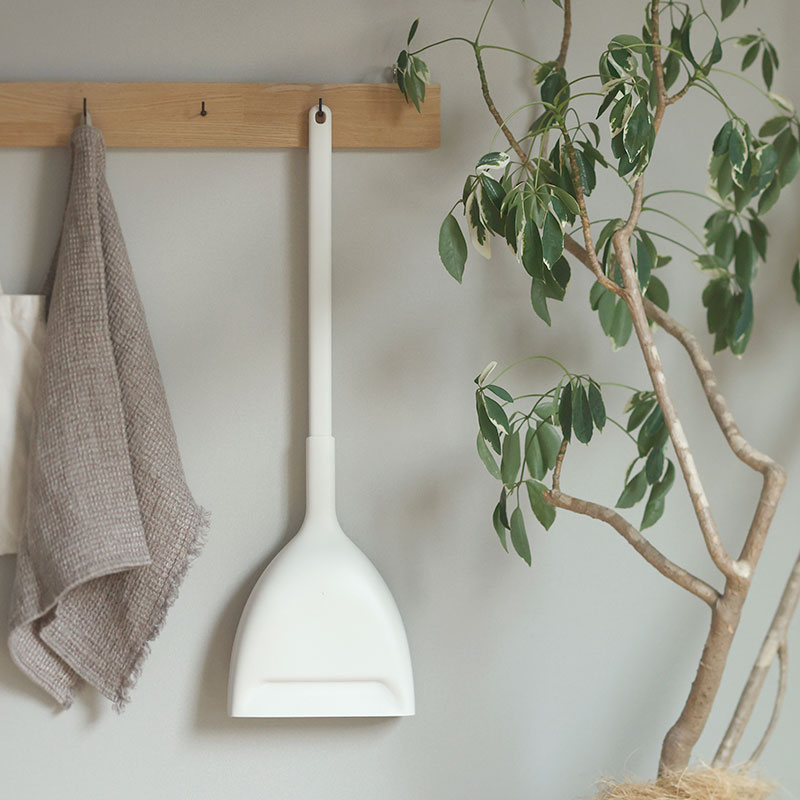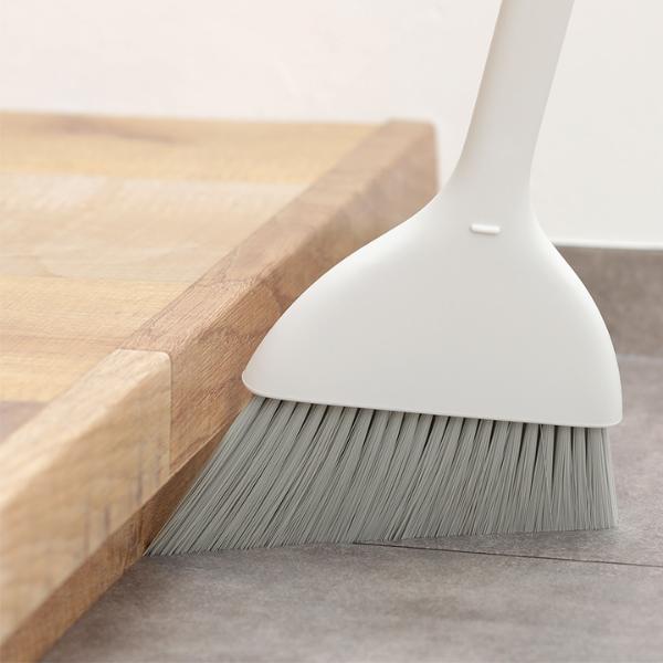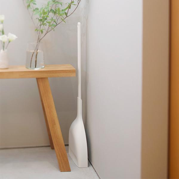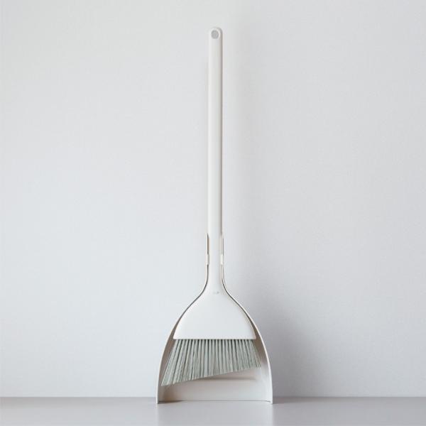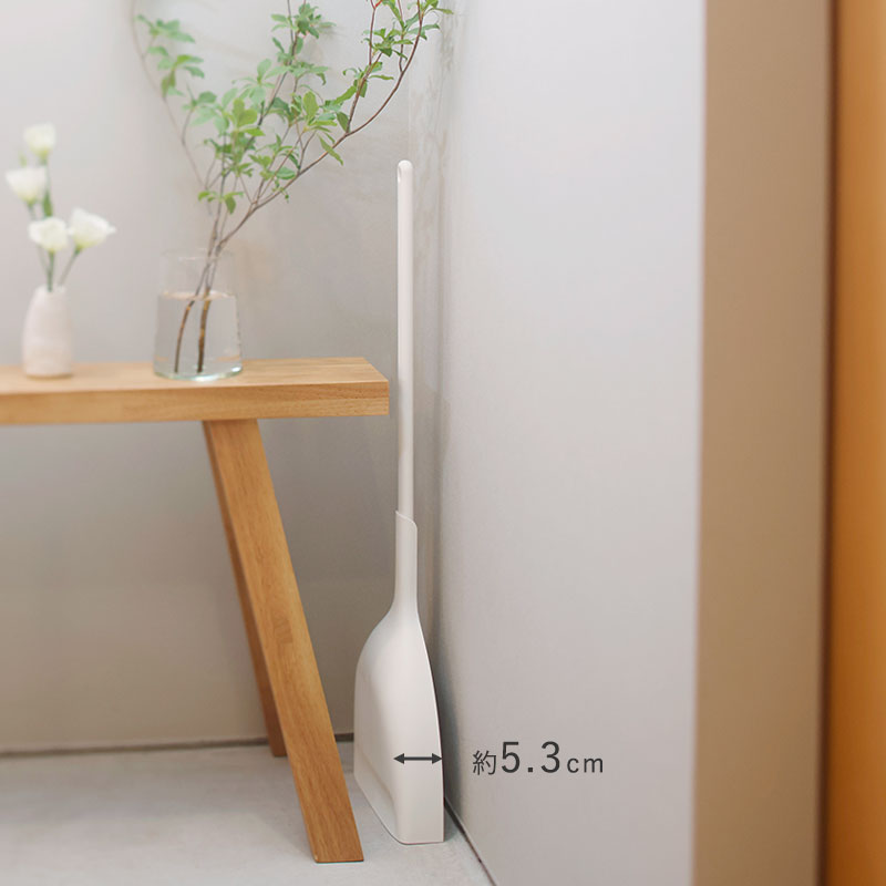 - とってもスリムなのに自立するほうき&ちりとりセット。6cmほどの隙間にも置ける省スペース設計で、どこでも使いやすい場所にスッと立てておけます。