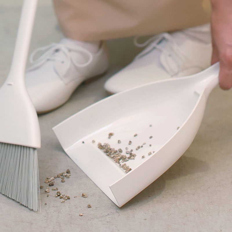 ※ほうきを立てかけて置いておくと毛グセがつきます。保管する際はちりとりにセットしてください。
