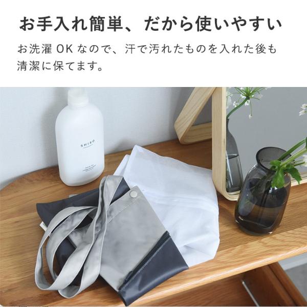 お洗濯OKなので、汗で汚れたものを入れた後も清潔に保てます。使い捨てのビニール袋と違い、長く愛用いただけます。