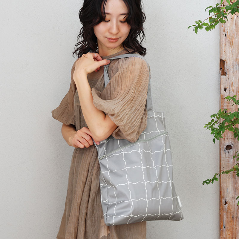 2026年に新登場したこちらは、肩掛けできるトートバッグ型。防水ポーチひとつで身軽に出かけたい日にもぴったりで、ポーチというよりバッグ感覚で持ち歩けます。