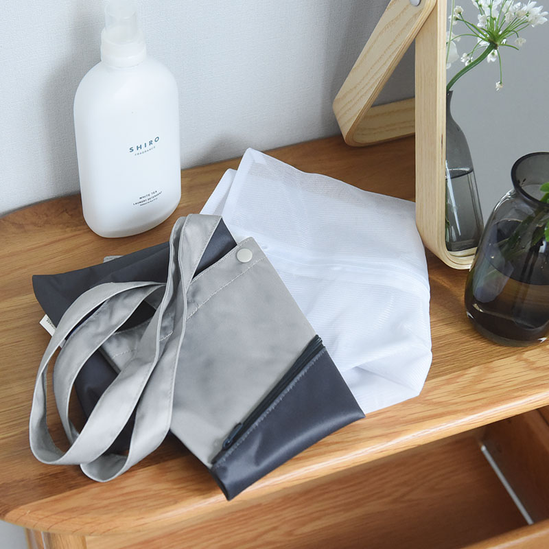 裏面には防水性に優れたTPUコーティングを施し、表面には撥水加工をプラス。濡れたものや汚れものも気兼ねなく収納でき、さりげなく目隠しもできる、頼れるアイテムです。
