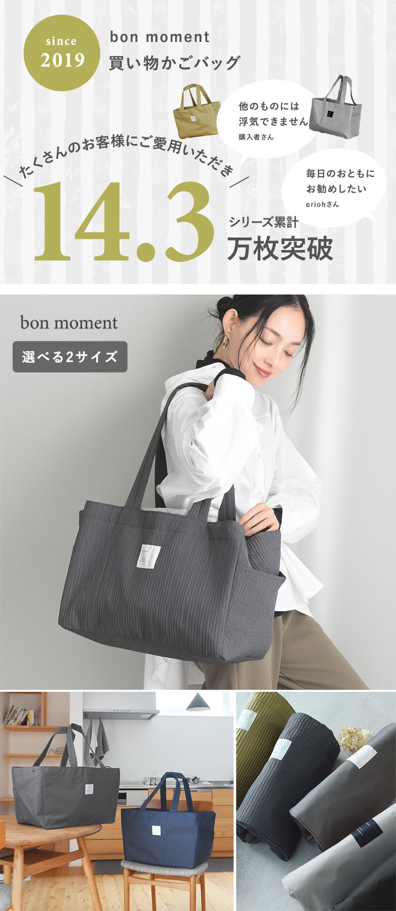 bon moment(ボンモマン)の「コンビニバッグ・エコバッグM」のストライプと同じ素材を採用しています。