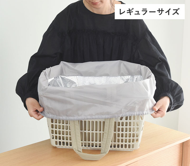 レジカゴのまま運ぶよりも、こちらのバッグに入れていた方が生鮮食品などは安心。内側保冷素材で一年中お使いいただけます。