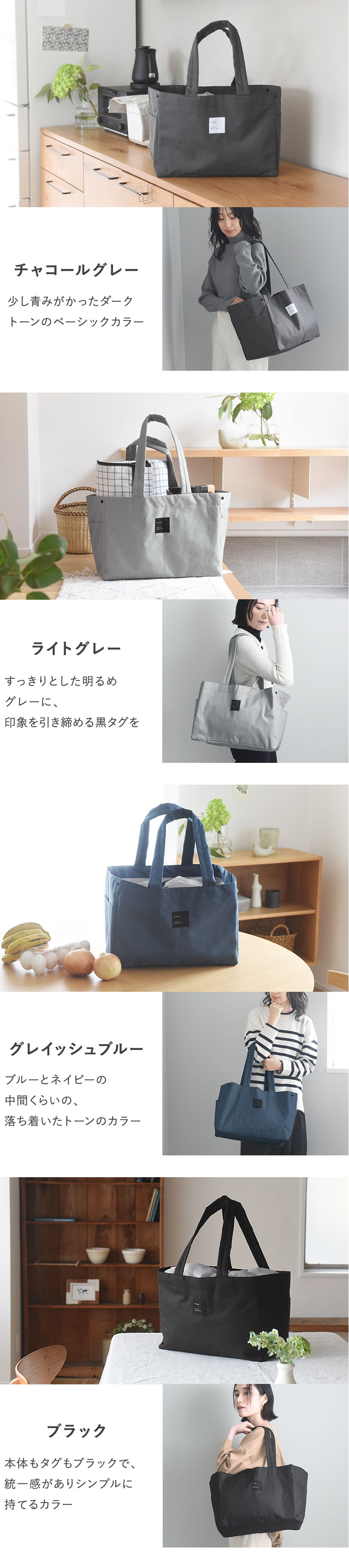 シンプルなデザインなので、食材の買い出し以外にも、ピクニックなどのアウトドアシーンにもマッチ。お弁当箱や水筒、ピクニックシートを入れて運動会に持っていくのにも便利です。
