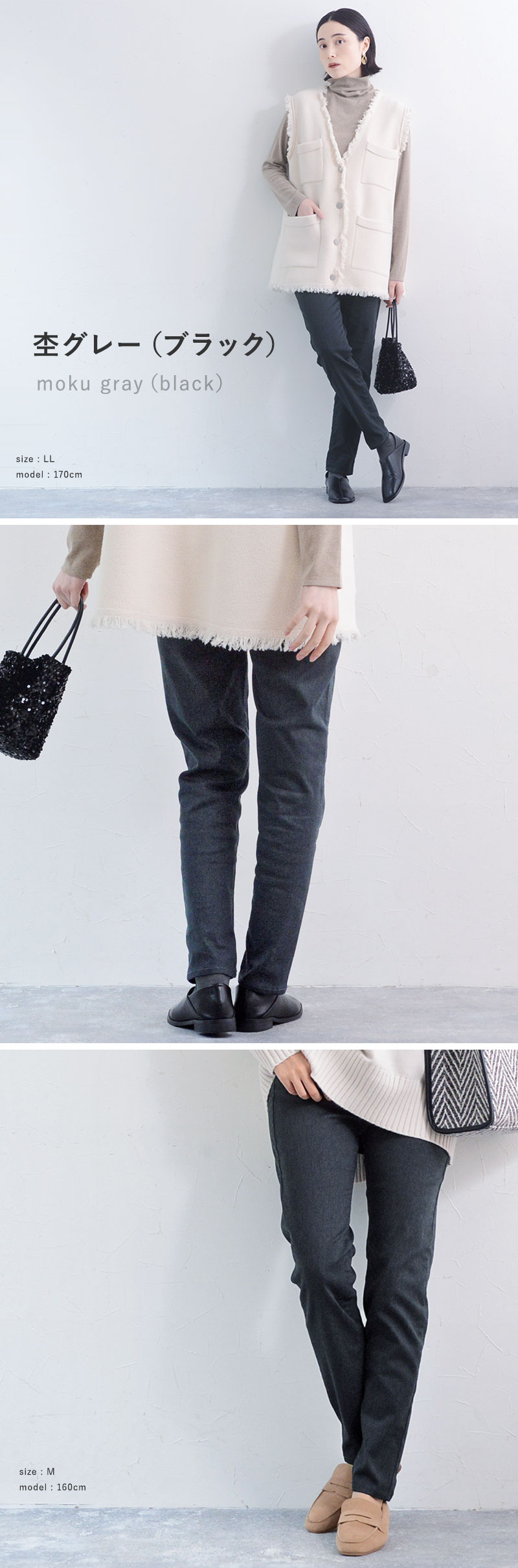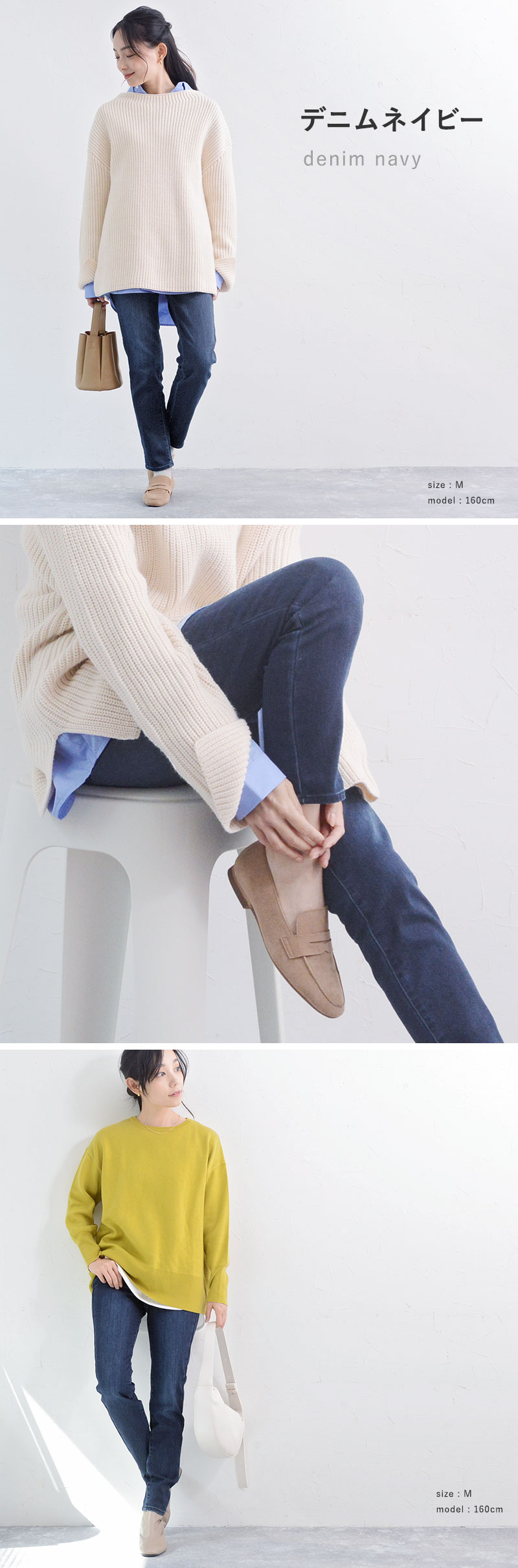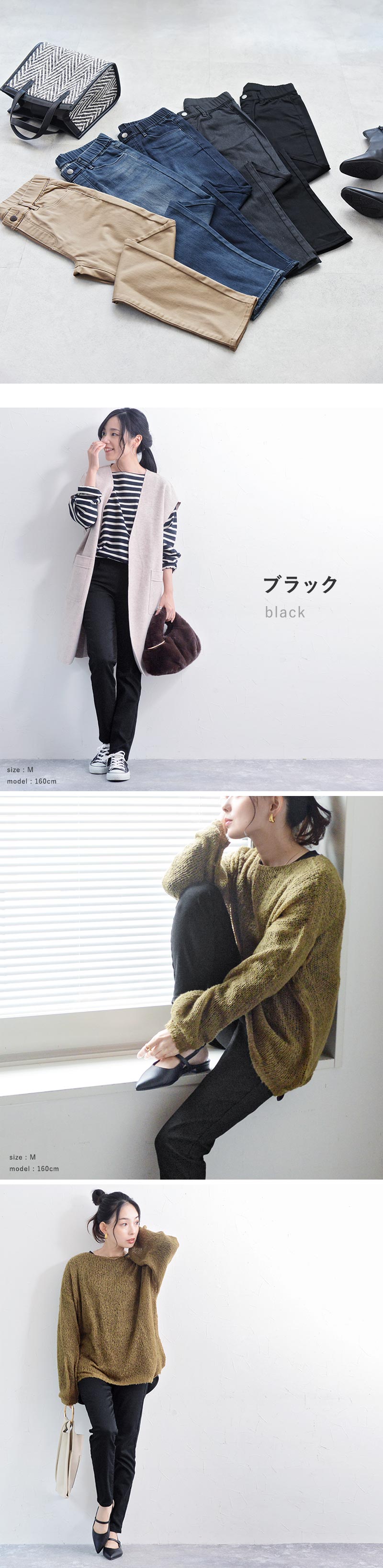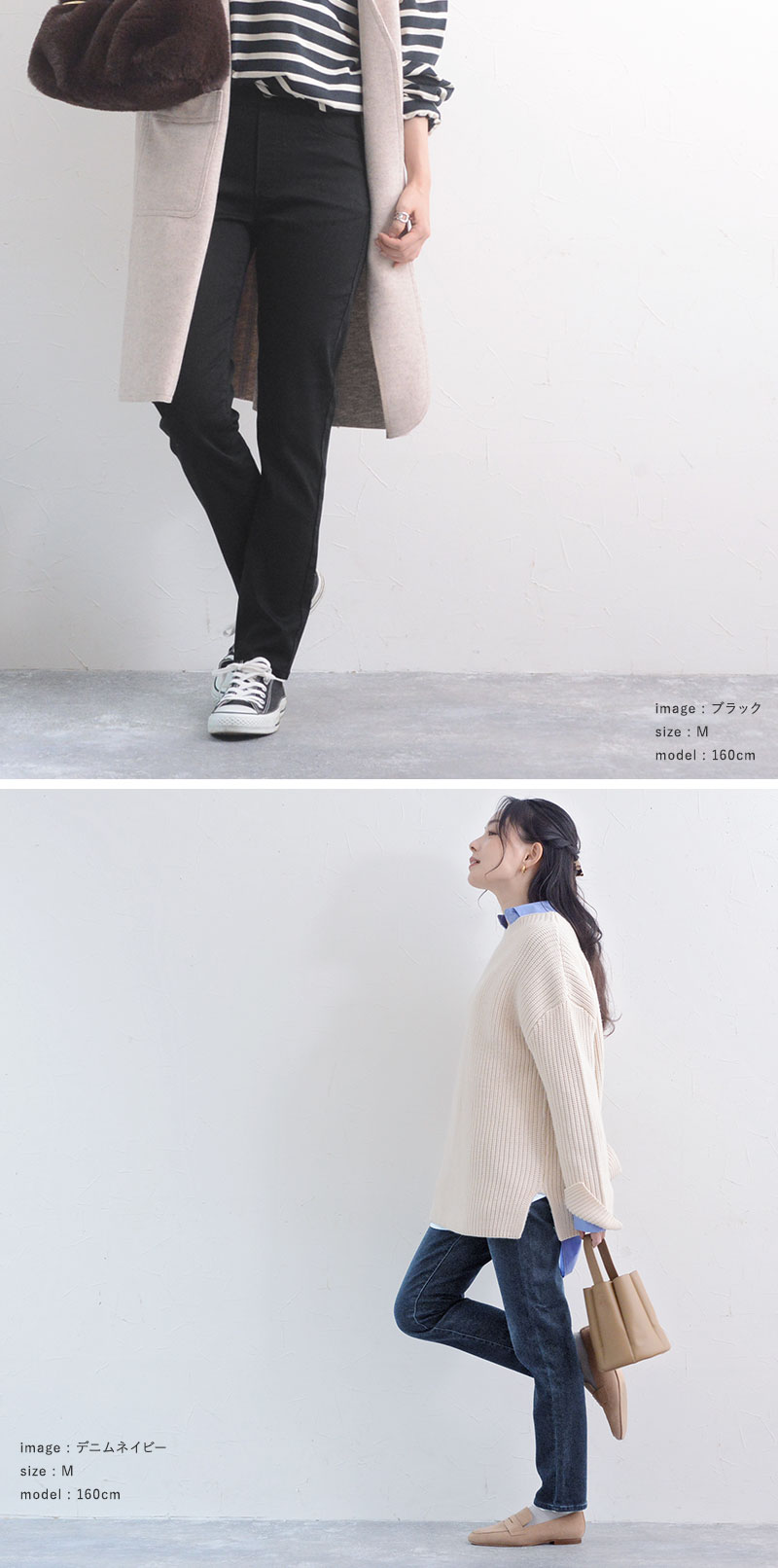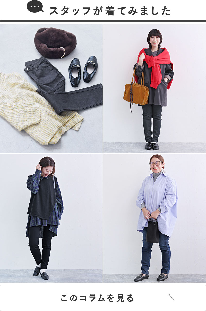 異なる身長のスタッフが着用してみました。サイズ感やコーディネートのご参考にどうぞ。