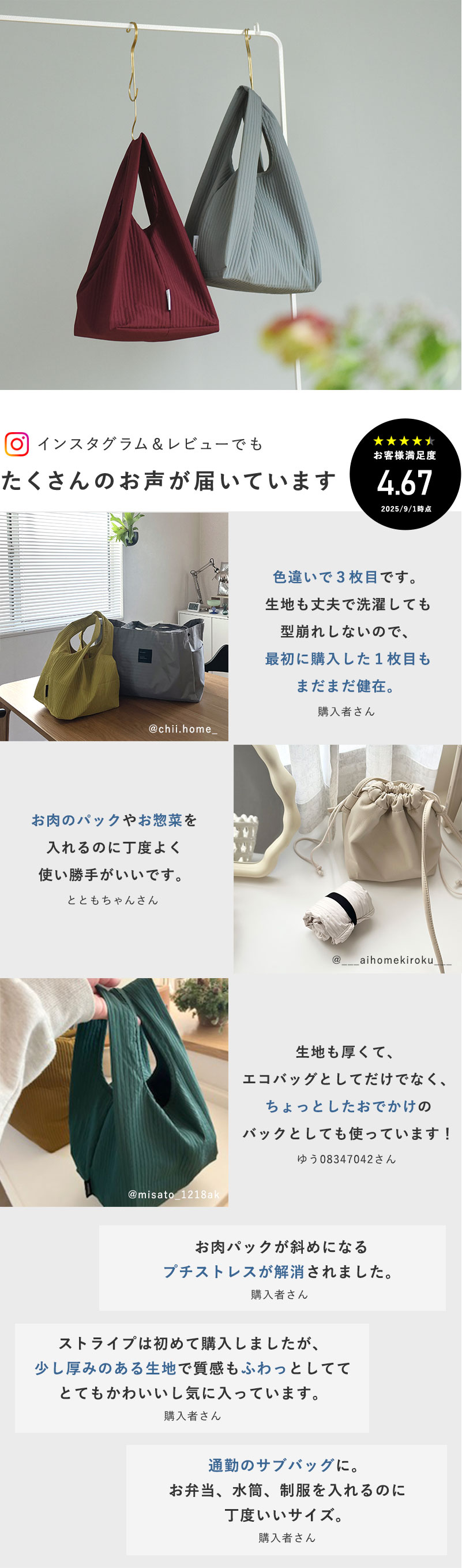 まとめ買いには大きなエコバッグ、日常的にはこのサイズ、と使い分けて◎