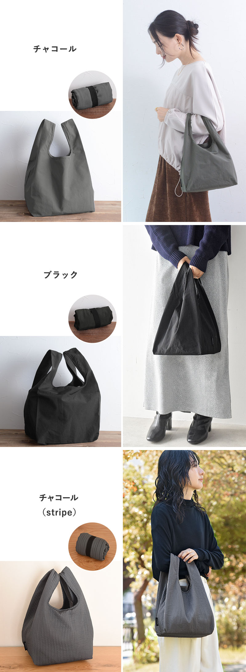 こちらのシリーズは全3サイズ展開。買い物の量が多い日は、こちらのコンビニバッグと合わせてワンサイズ大きい「エコバッグM」を使えば、ちょうどよく収まります。