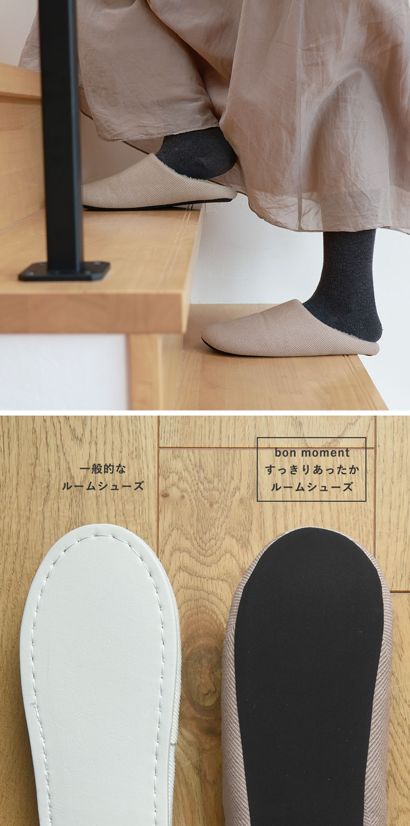 一般的な「あったかスリッパ」は、保温性を高めるためにポテッとしたシルエットになりがち。寒い冬でもすっきり見えるデザインが良い…そんな想いを叶えるのが、bon moment(ボンモマン)のすっきりあったかルームシューズです。