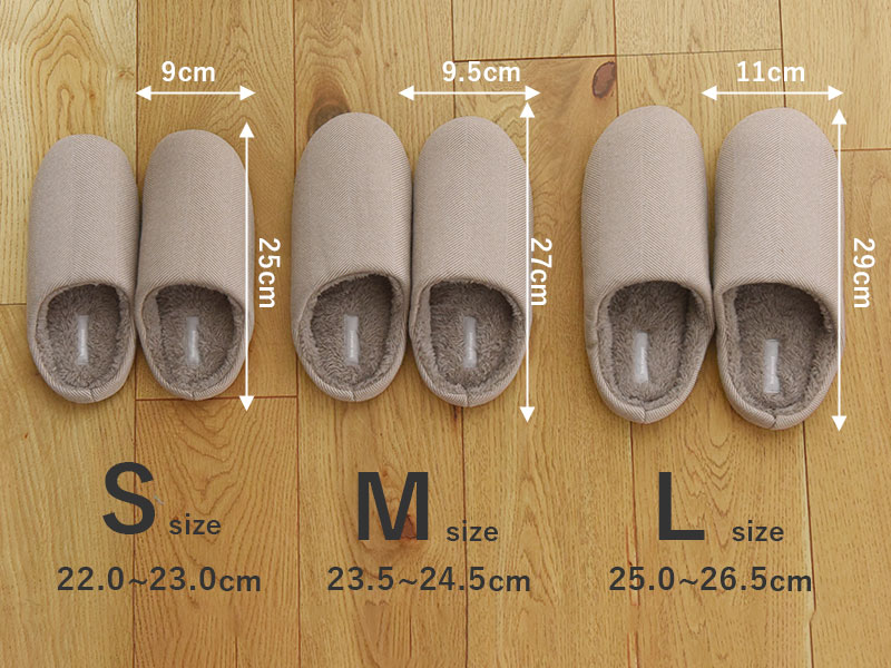ユニセックスで使えるデザインなので、サイズはS~Lまでの3種類展開に。ご夫婦お揃いでも履いていただけるので、新築祝いや結婚祝いのちょっとしたギフトにも。