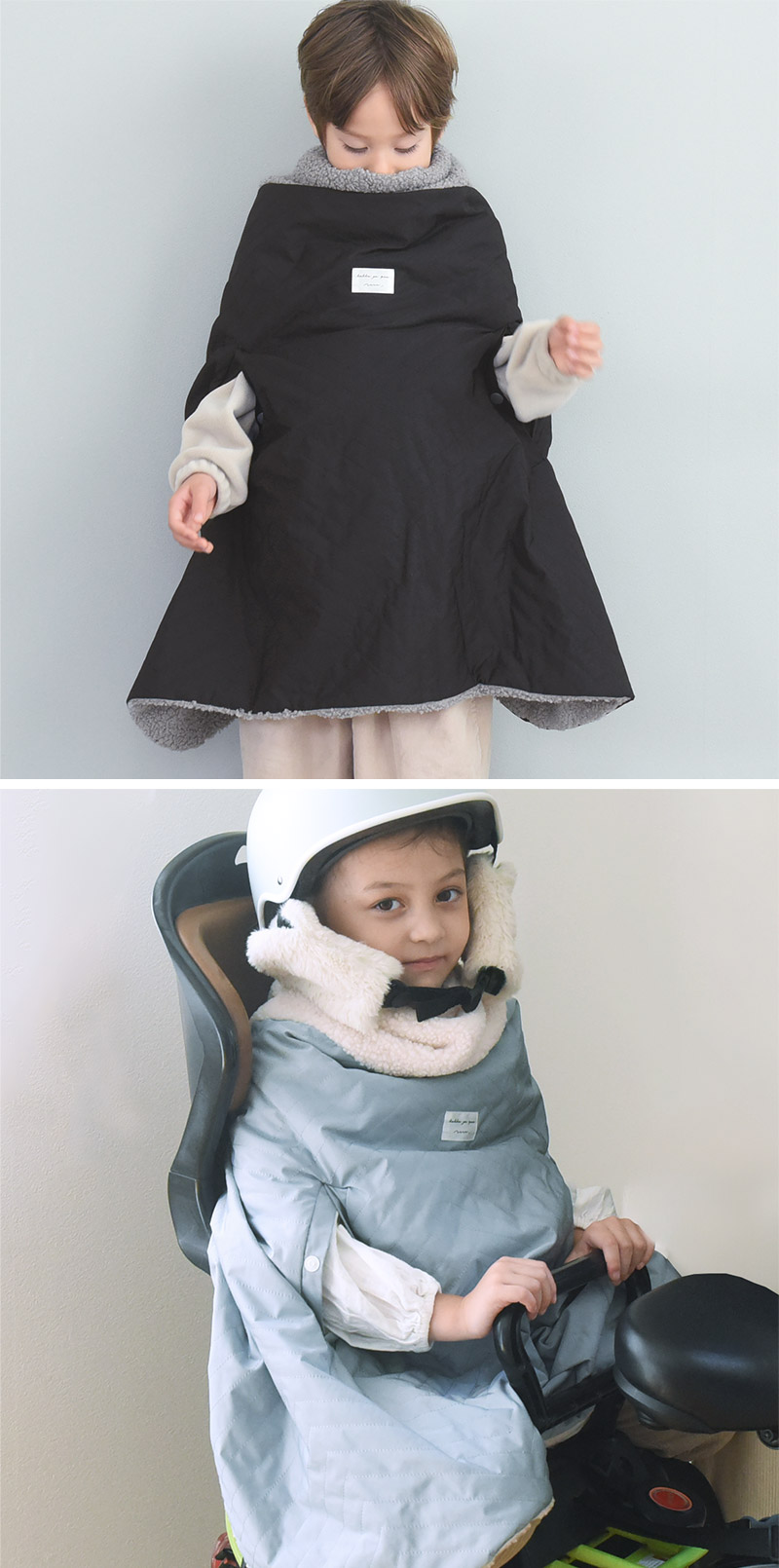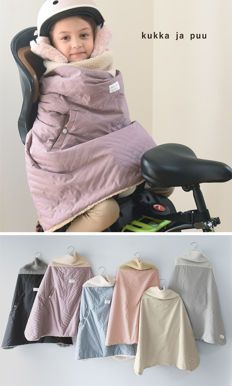 送り迎えなどの自転車で北風に晒されるキッズたち。家に着く頃には体が冷え冷え、なんて事を防ぐには、自転車用の防寒ポンチョがあると安心です。