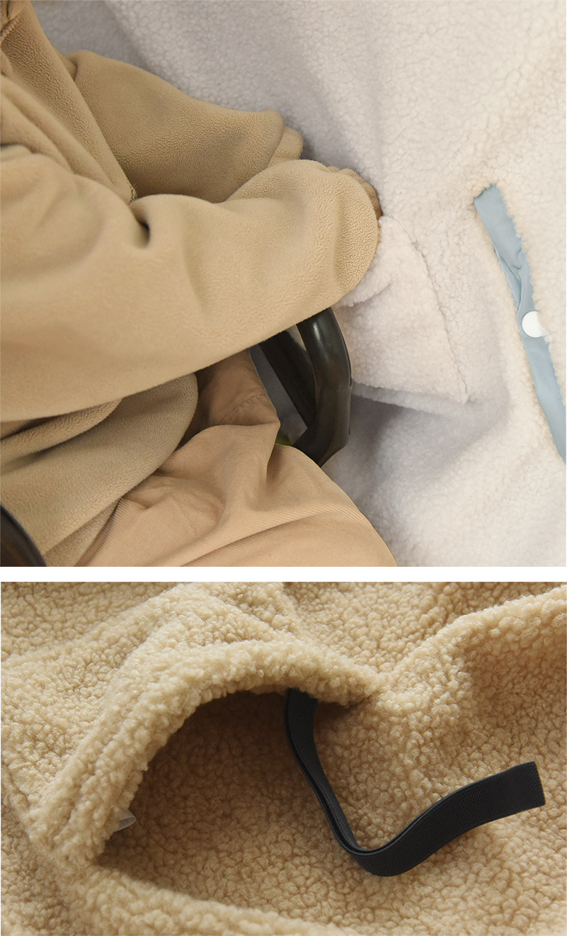 3、手のぬくぬく感にも抜かりなく裏面には、内側までボア素材のポケット付き。ポケットに入れて持ち手を掴めば、ひんやりしません。