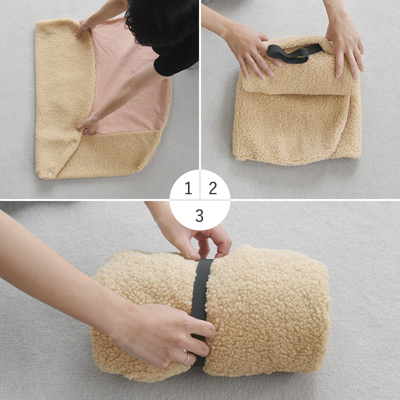 ポケットの中にゴムベルトが付いているので、使わないときは折りたたんでコンパクトに収納できます。