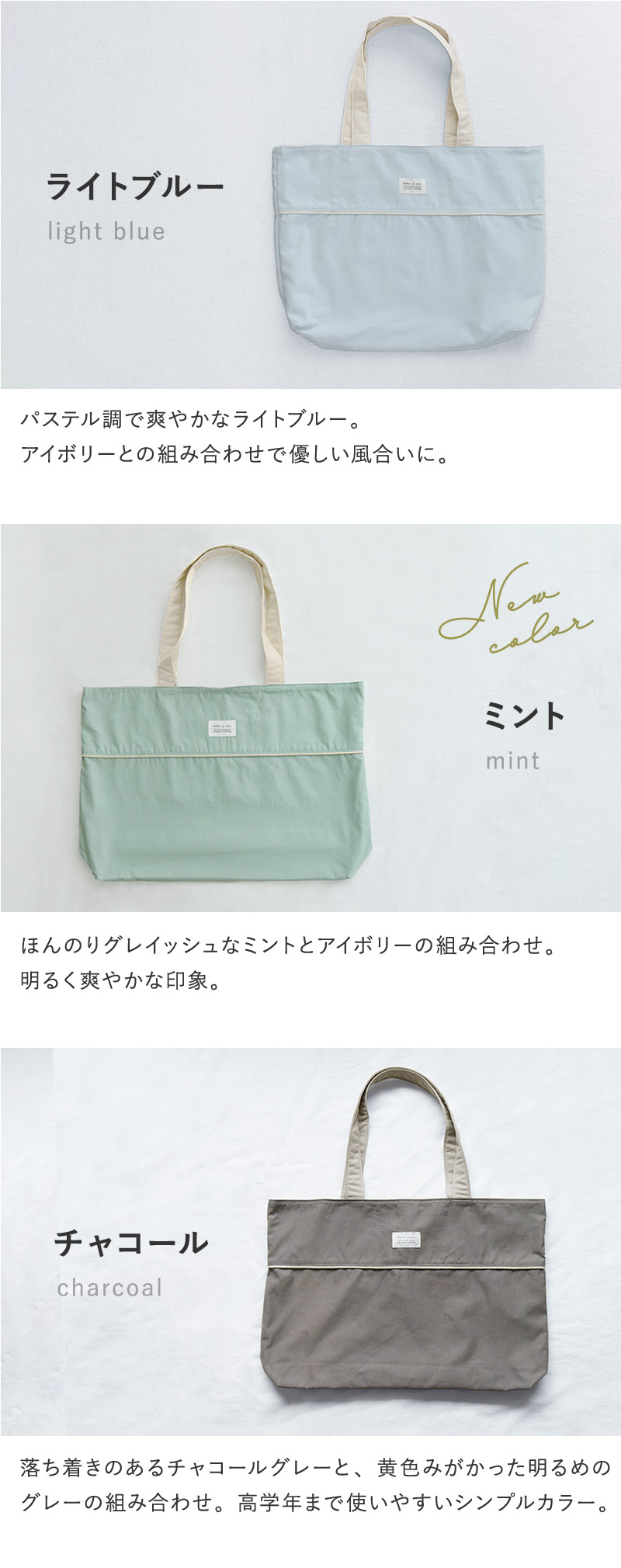北欧カラーの「マチありバッグ」