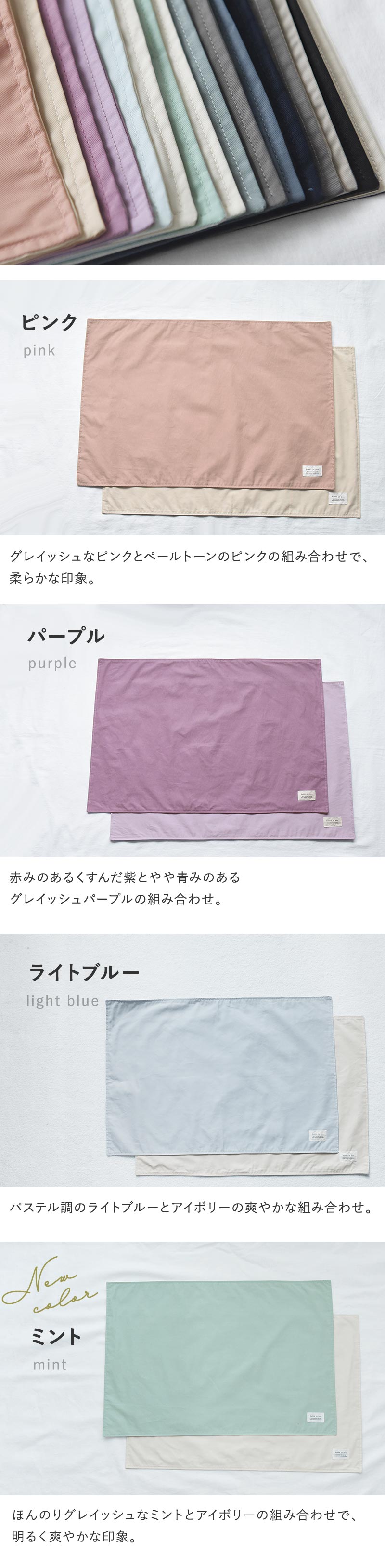 ※同じシリーズでも生地の生産上、商品によって色差が出ることがございます。予めご了承ください。