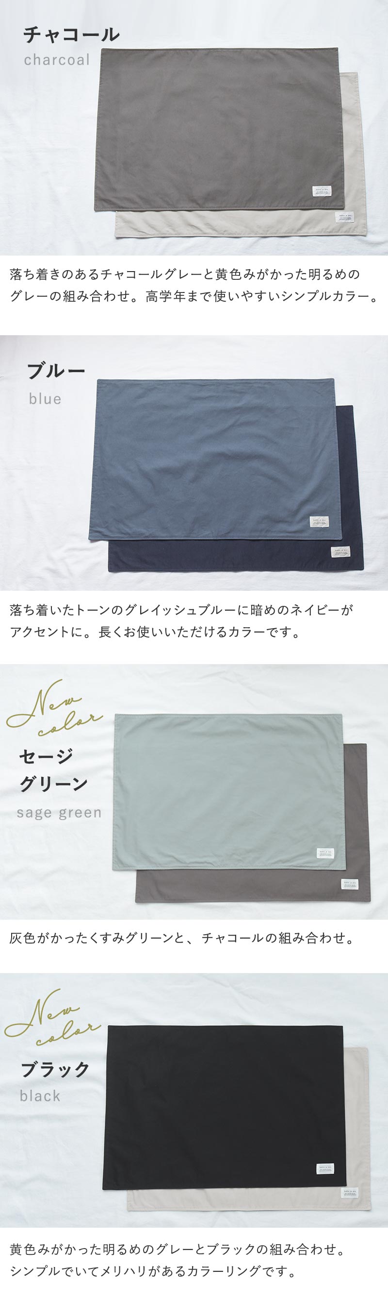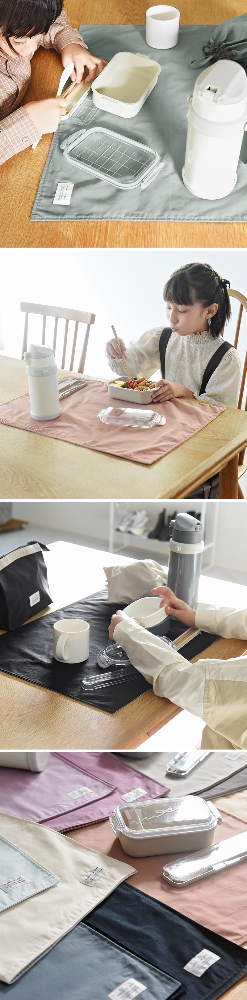 - 落ち着いた北欧カラーの給食ランチョンマット。丈夫な素材と飽きのこないデザインで、入学から卒業まで長く使えるのもポイント。男の子も女の子も選べるカラー展開です。