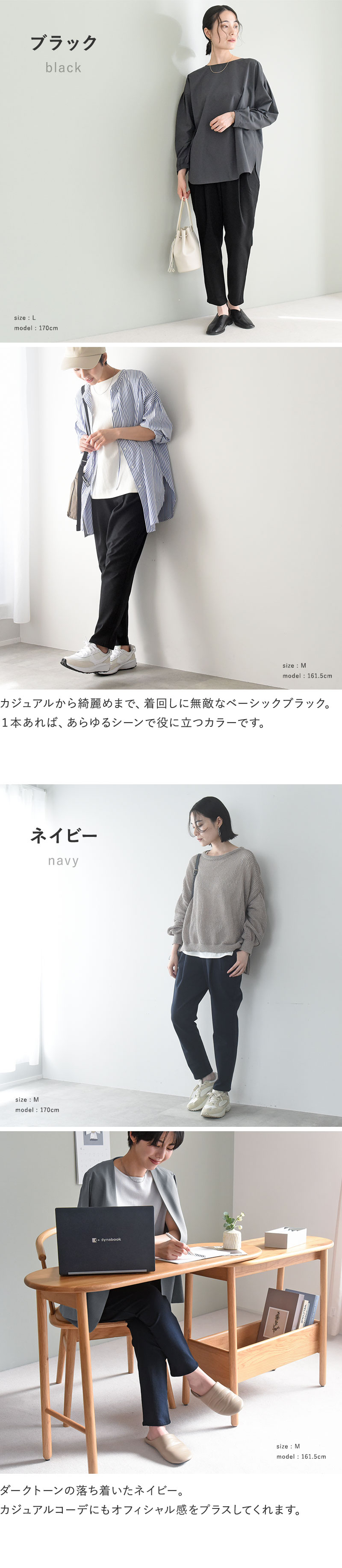 お仕事で外出の日、リモートワークの日、子どもと出かける日・・・週3回は履きたくなる、1度知ったら手放せなくなるパンツです。