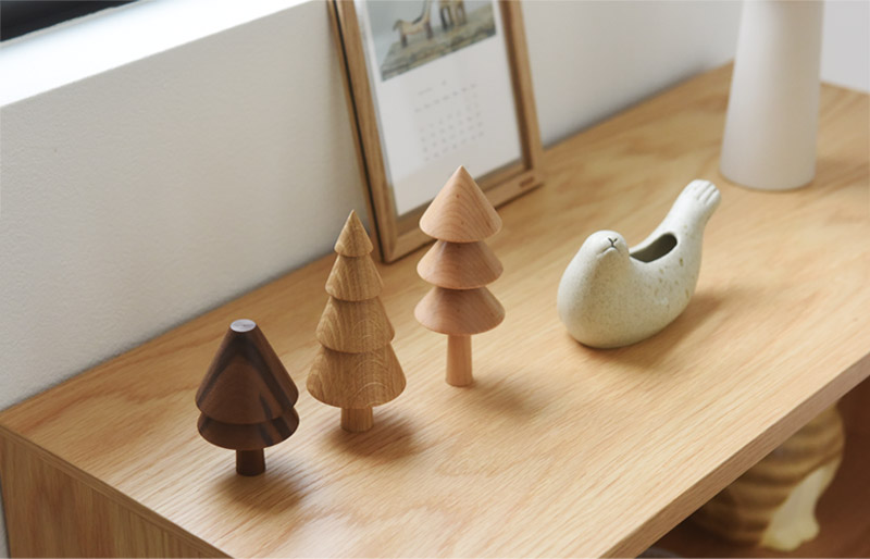 思わずコレクションしたくなるような、いろいろな形、色のツリーを並べて、コーディネートをお楽しみください。