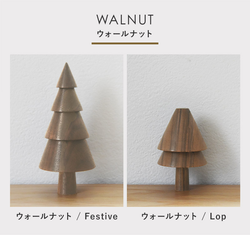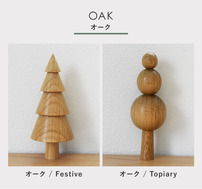 3つの樹種と5種のスタイルからお選びいただけます。ツリーのようなオーソドックスな形から、丸や三角を重ねたような独創的な形まで、組み合わせが広がります。