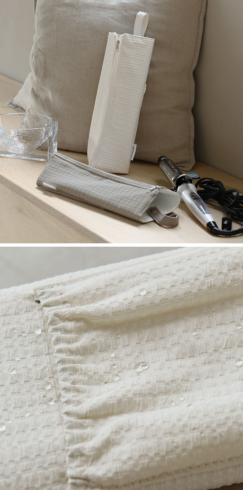 出しっぱなしでも絵になるロングセラーアイテム「ヘアアイロンポーチ」に、新素材<waffle grid>が仲間入りしました。
