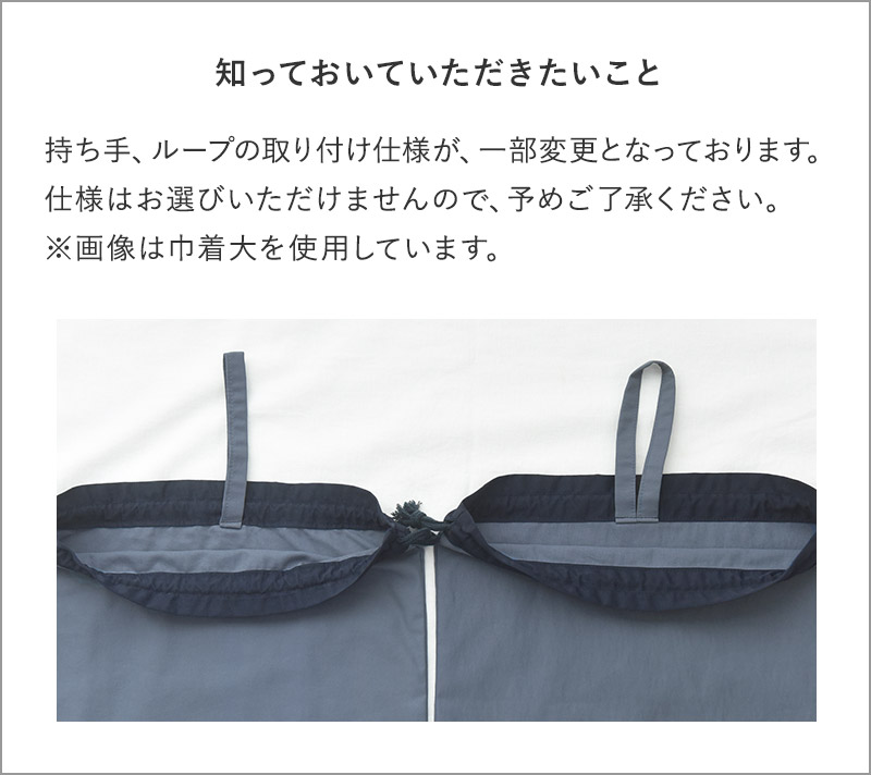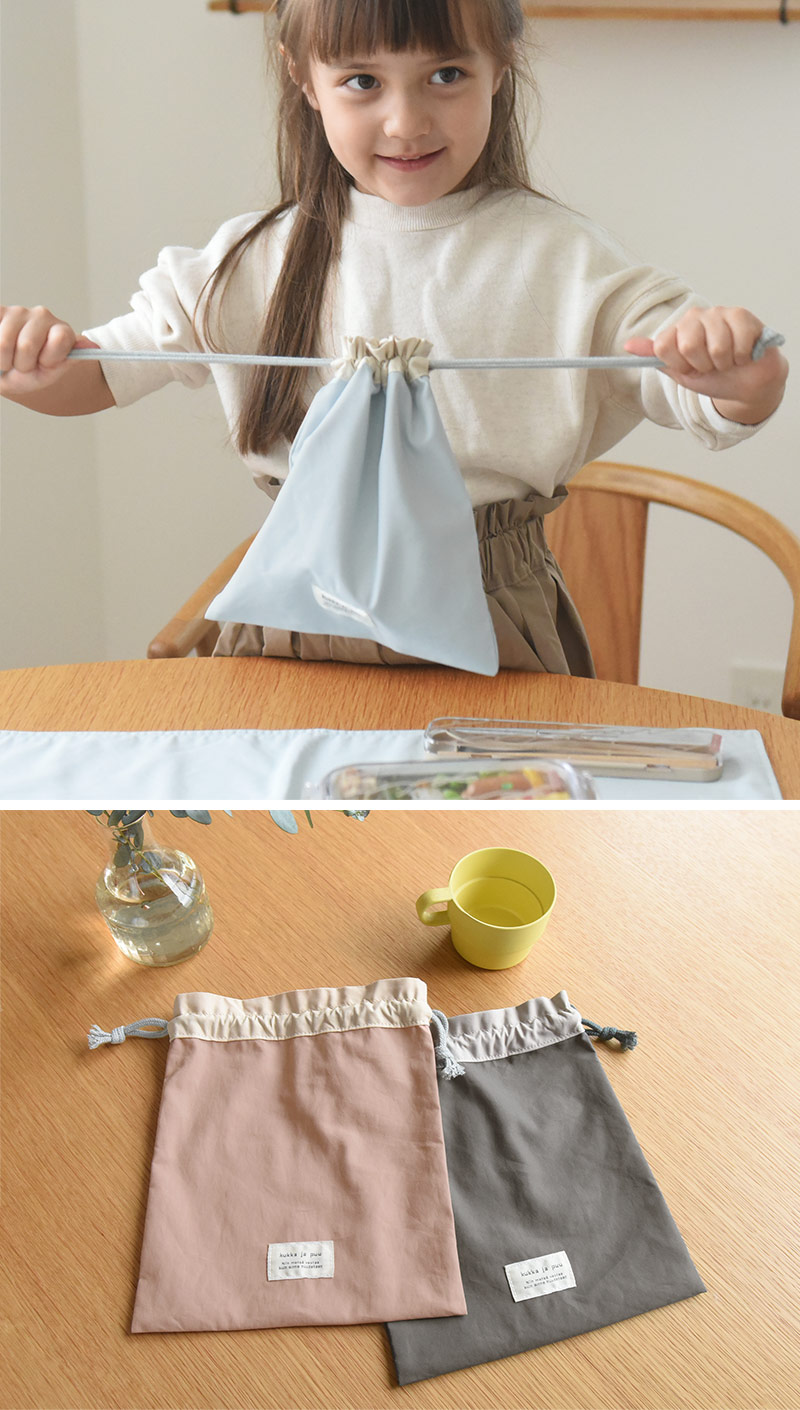 - コップやランチョンマットを入れるのにちょうどいいサイズ感の巾着袋。シンプルデザインだから、入園・入学から高学年まで幅広くお使いいただけます。