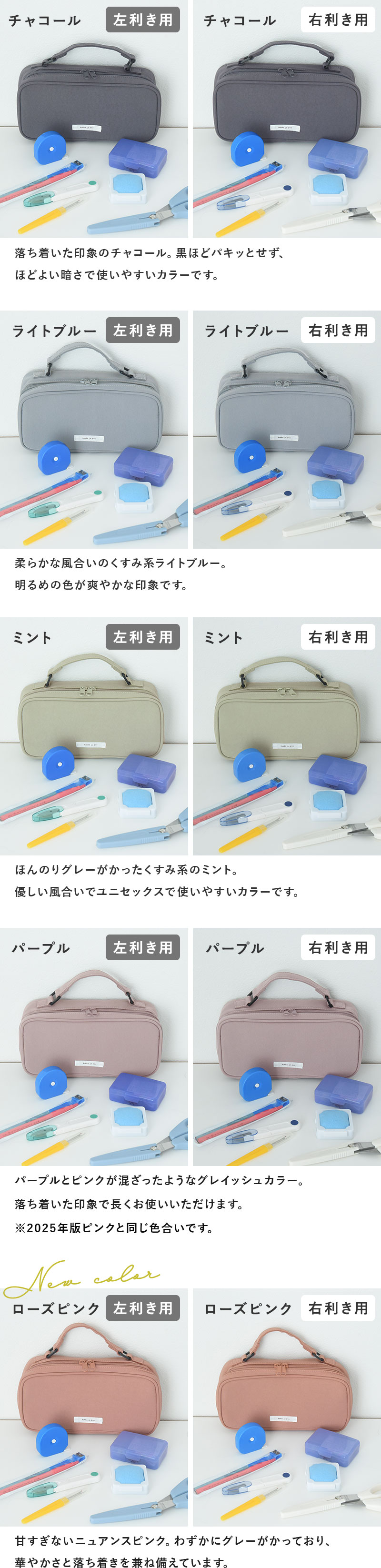 ぱっと目を引く「ローズピンク」が新登場。ほんのりグレイッシュで甘過ぎず、高学年さんも使いやすいカラーです。