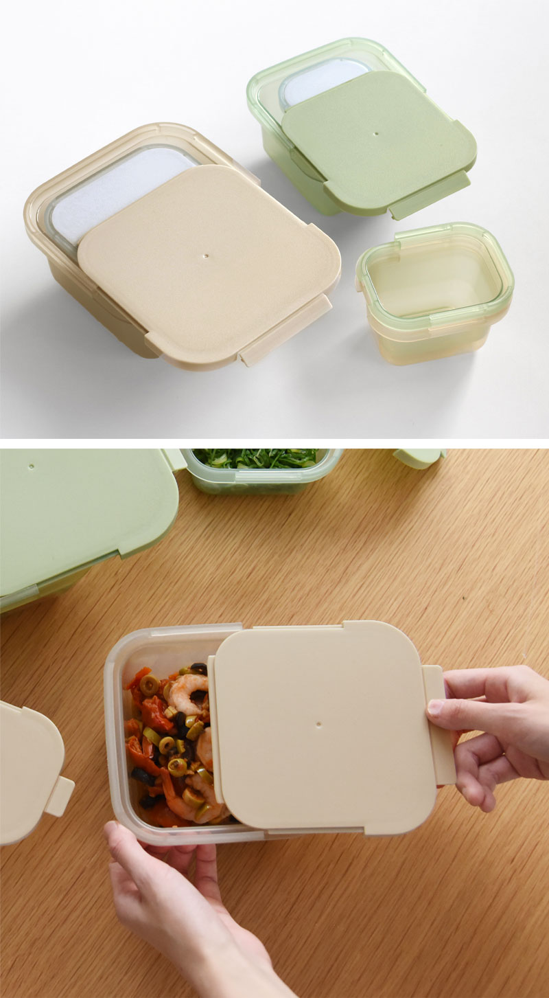 Hip(ヒップ)の保存容器は、ニュアンスカラーでスタイリッシュなルックスと、特許出願中の1点ロックでがっちり締まる、機能にもこだわった一品です。
