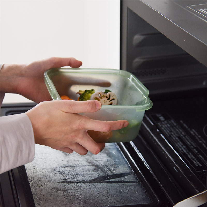 蓋を外せば電子レンジで使用のOK。おかずの温め直しや熱い料理の移し替えも可能です。耐冷性にもすぐれ、冷蔵庫や冷凍庫での保存も問題ありません。