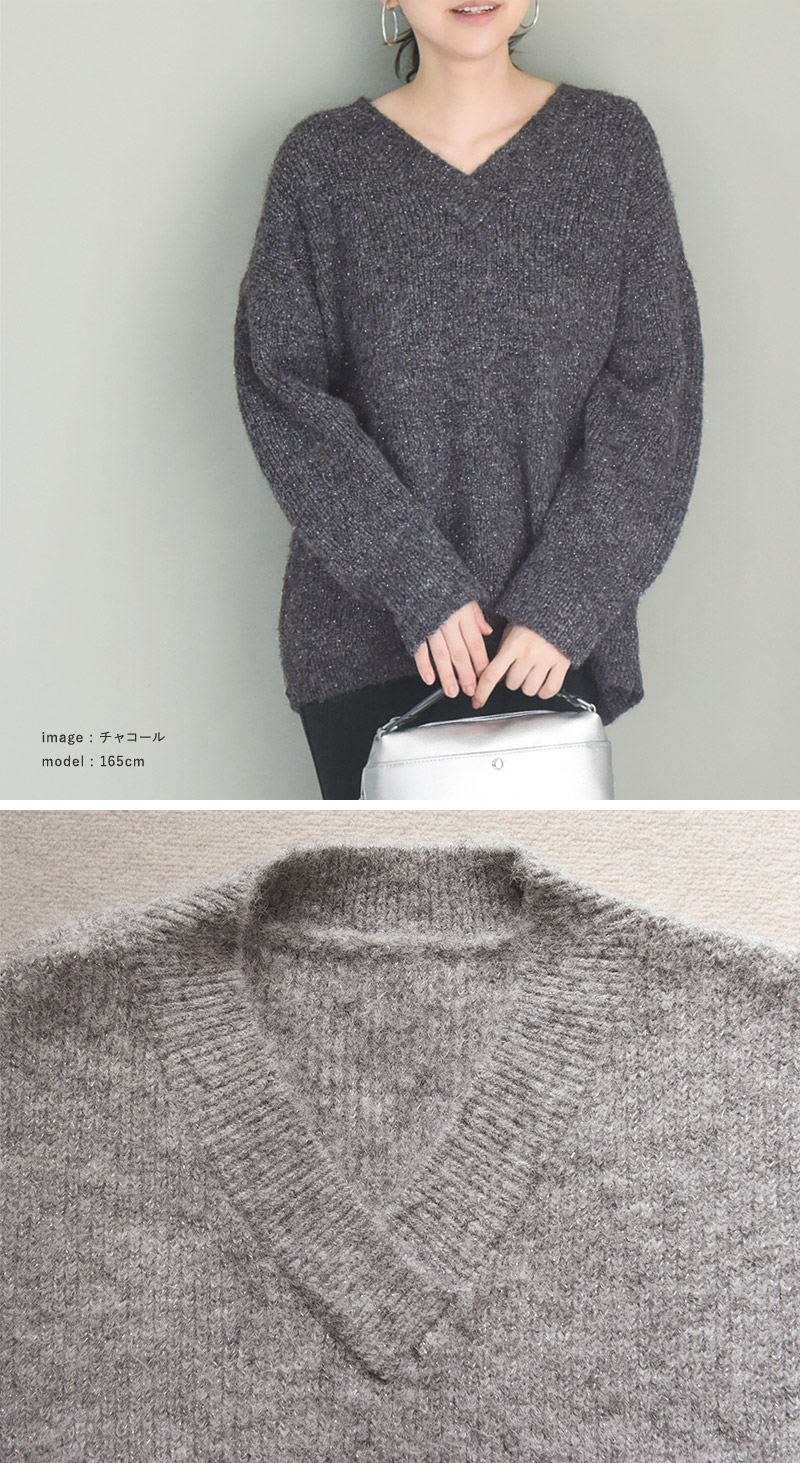 上品なきらめきがシーズンモードを盛り上げてくれるニット。暗くなりがちな冬コーデに華やかさを添えてくれます。ニュアンスのある杢調の生地感がシンプルすぎず表情感のある装いに。