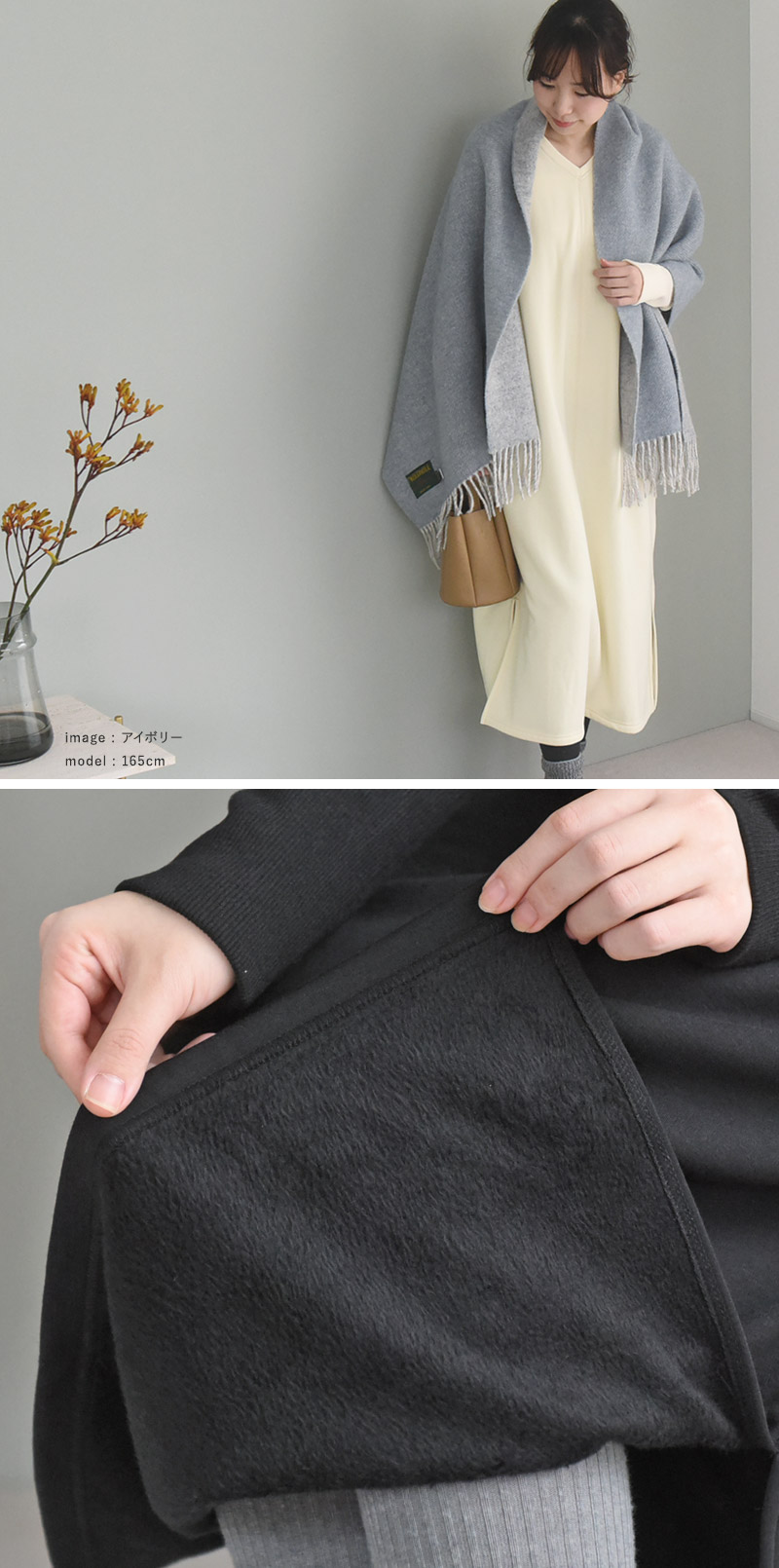 アイボリー黄色みを帯びたやさしい風合いのアイボリー。冬の景色に似合う白は、着るとほっこり穏やかな気持ちで過ごせそうです。