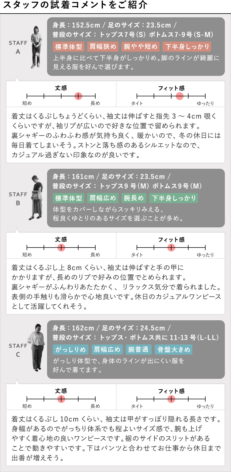 ゆったりシルエットとロング丈ほどよくゆったり感のあるワンピースは、すぽっと着られて楽ちんな着心地。1枚でも暖かいロング丈はパンツとのレイヤードも◎です。裾の両脇にスリットが入っているので足さばきも抜群。
