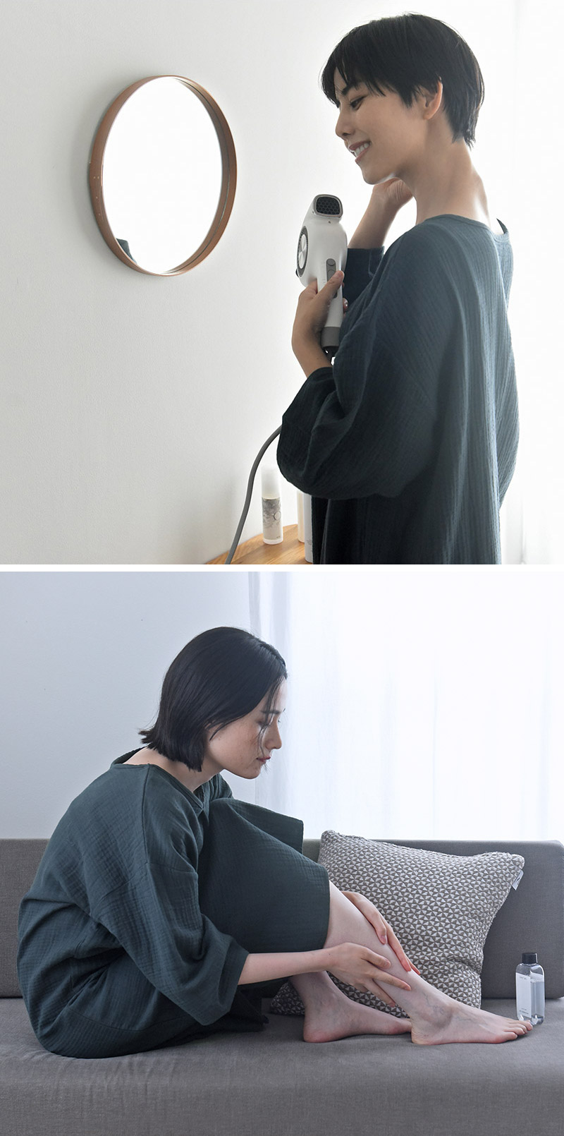 お風呂上り、できればすぐにお肌の保湿がしたい。そんな時にも、しっかり体を拭いたり着替えをする代わりに、こんなワンピースをサッと着れば、すぐにスキンケアに取り掛かれます。