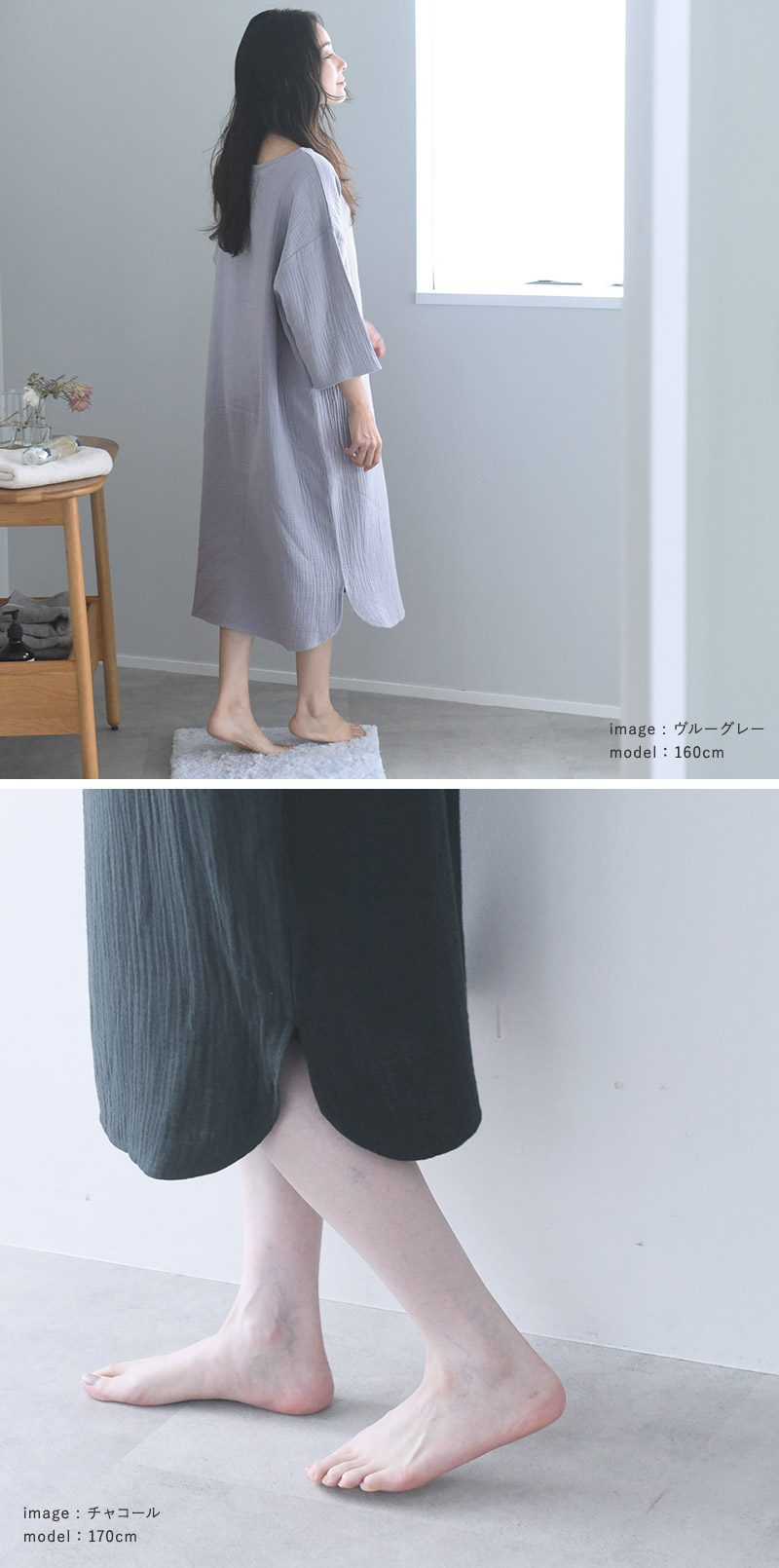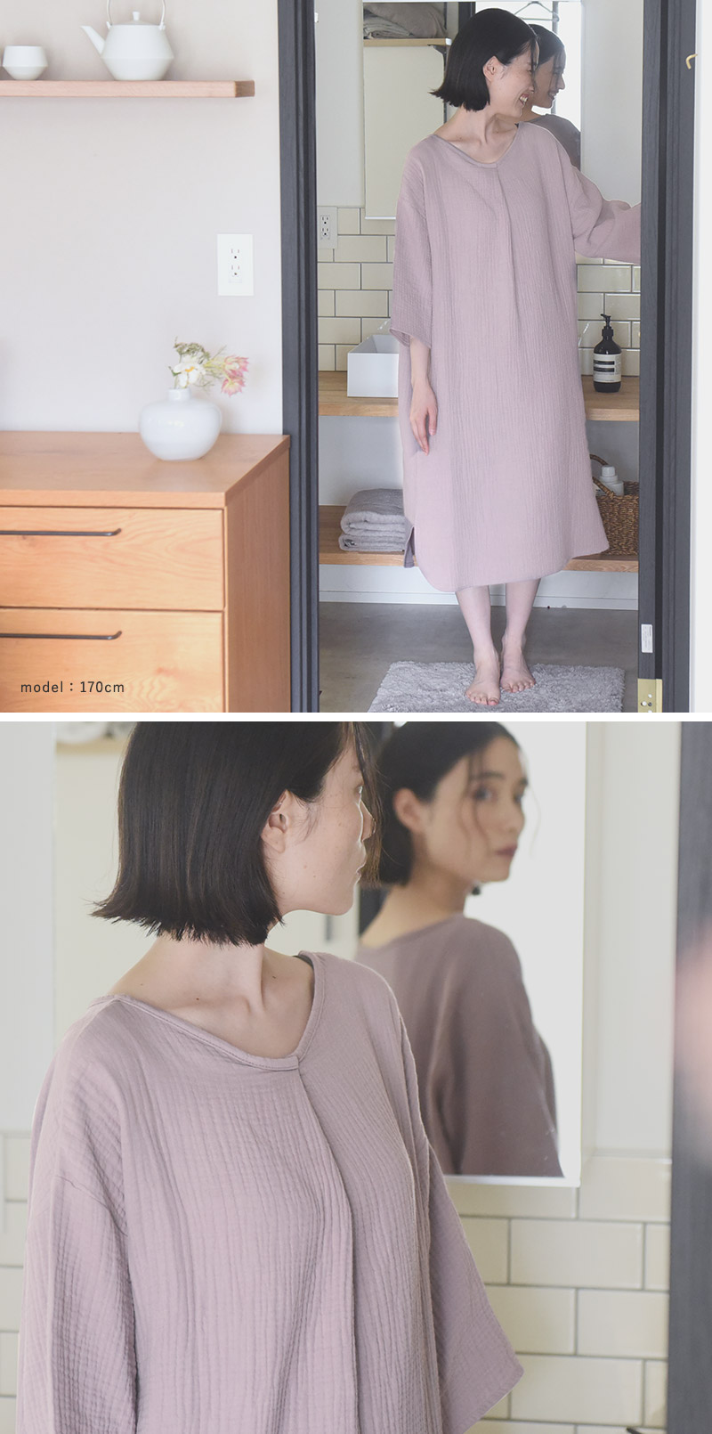 bon moment 3重ガーゼ 湯上りガーゼワンピース 長袖