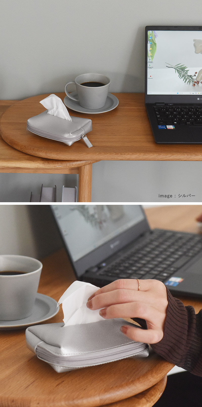 予備ティッシュもまとめて収納できるので、バッグの中で迷子にならず、いざ必要な時にサッと取り出せます。