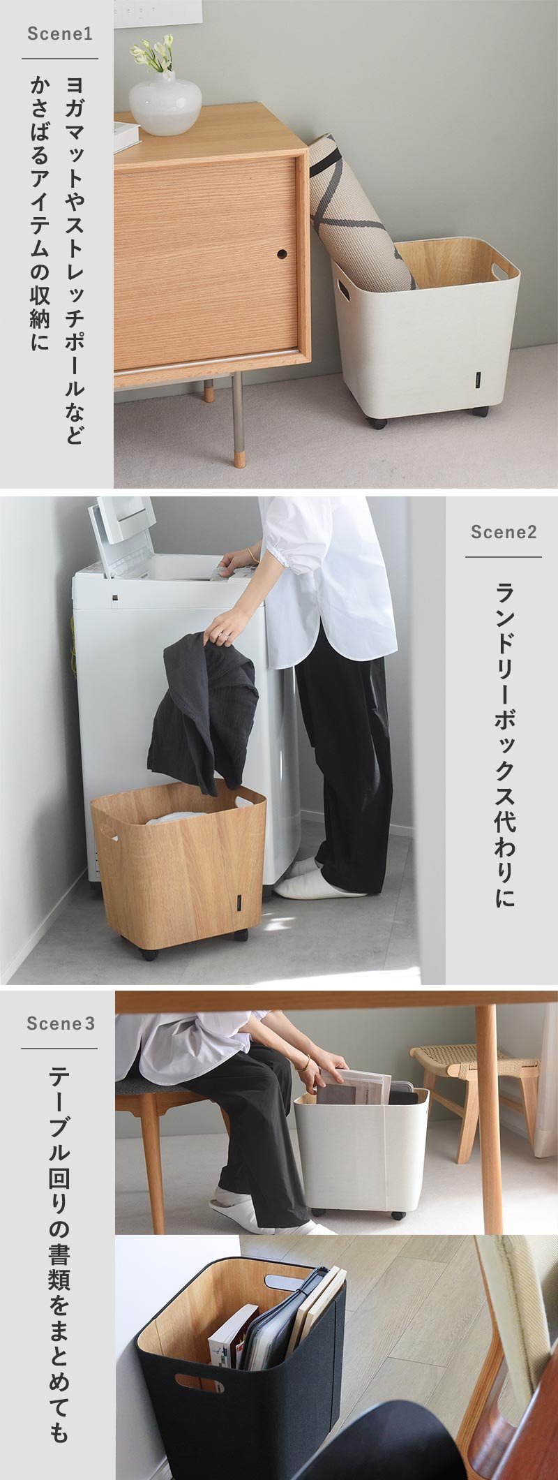 ヨガマットなどかさ張りがちなアイテムの収納や、ランドリーボックス代わりに、さらに、ファイルボックスをいれて書類系をまとめておくのにも便利です。